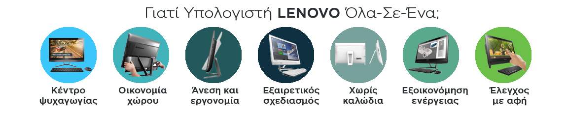 Οι Αll-In-One επιτραπέζιοι υπολογιστές Lenovo, ενσωματώνουν την ογκώδη, εξωτερική κύρια μονάδα, καθώς και όλα τα υπόλοιπα εξαρτήματα του συστήματος, έτσι ώστε ένας ολόκληρος υπολογιστής να χωράει μέσα σε μία λεπτή, στιλάτη οθόνη!