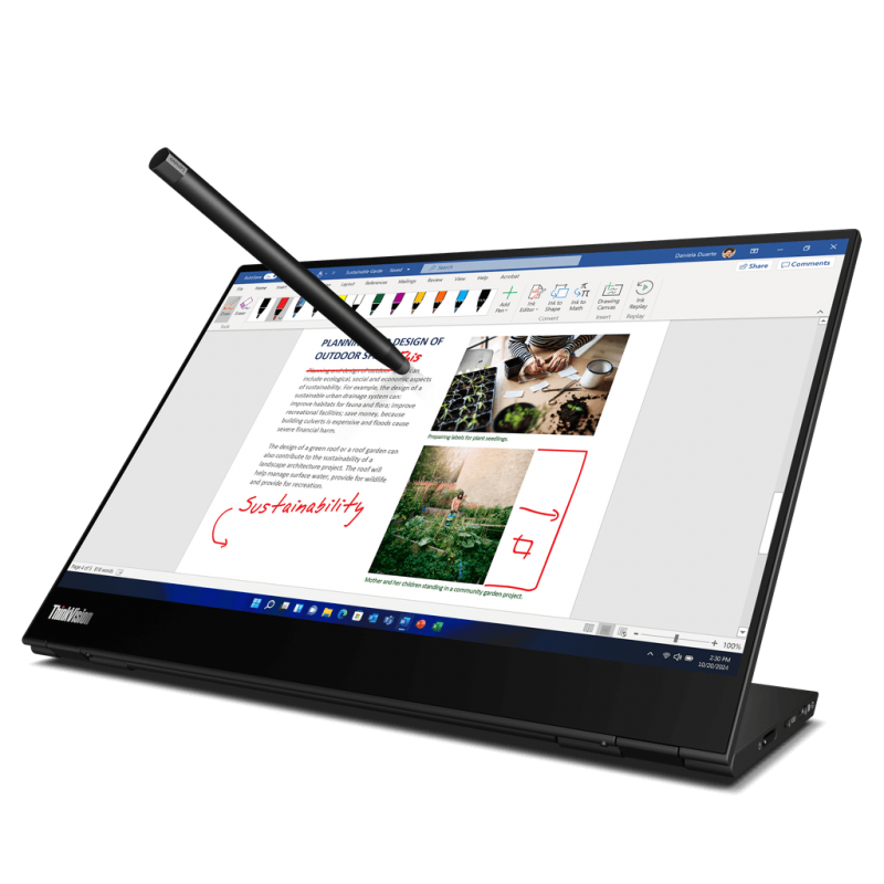 Φορητή οθόνη για κάθε σωστό επαγγελματία! Αν θέλετε να παρουσιάζετε εργασίες , video , φωτοραφίες κτλ. και σε δεύτερη οθόνη τότε ρίξτε μια ματιά στη ThinkVision M14t. Αυτή η φορητή οθόνη αφής 14 ιντσών QHD+ συνδέεται με το φορητό υπολογιστή σας μέσω USB-C. Είναι ένας εξαιρετικός τρόπος για να μοιράζεστε περιεχόμενο με πελάτες και συναδέλφους ταυτόχρονα. Ο εργονομικός σχεδιασμός της σάς επιτρέπει να ελέγχετε τη γωνία θέασης και χάρη στις θύρες που διαθέτει και στις δύο πλευρές η χρήση της είναι ακόμα πιο ευέλικτη. |