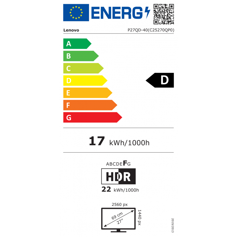 Lenovo ThinkVision P27QD-40 27in-2.5KQHD IPS Antiglare HDMI+DP+USB 3Y