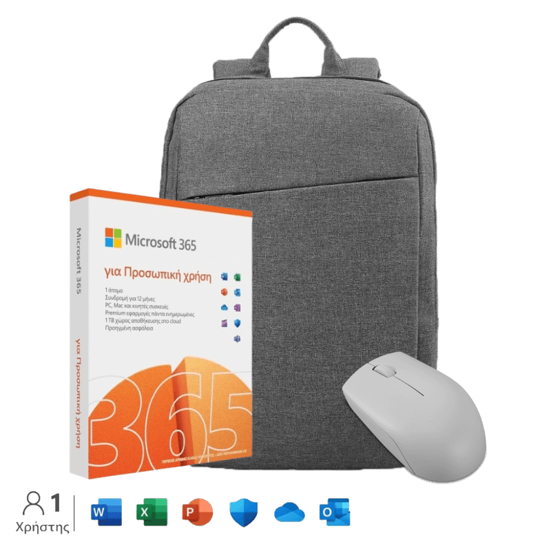 SmartPack: Notebook Office (Microsoft 365 +Mouse Wireless 300 ArcticGrey + Lenovo B210 Backpack)